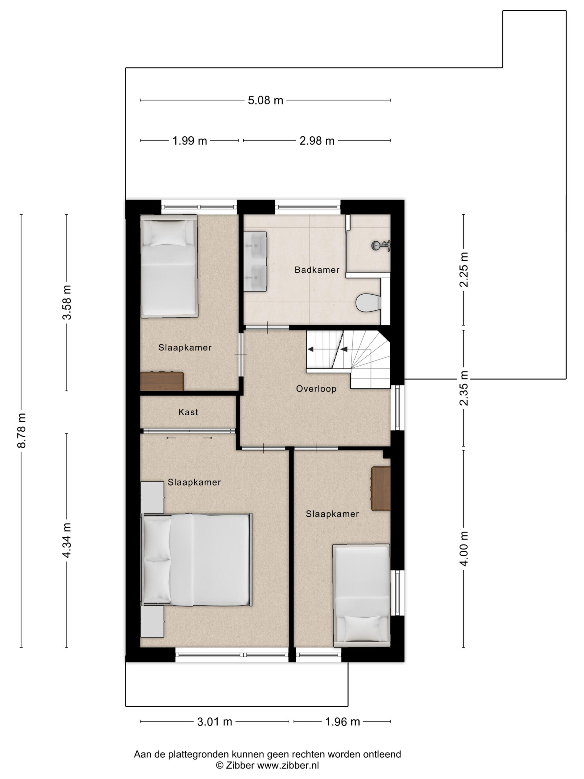 – via vaste trap te bereiken overloop