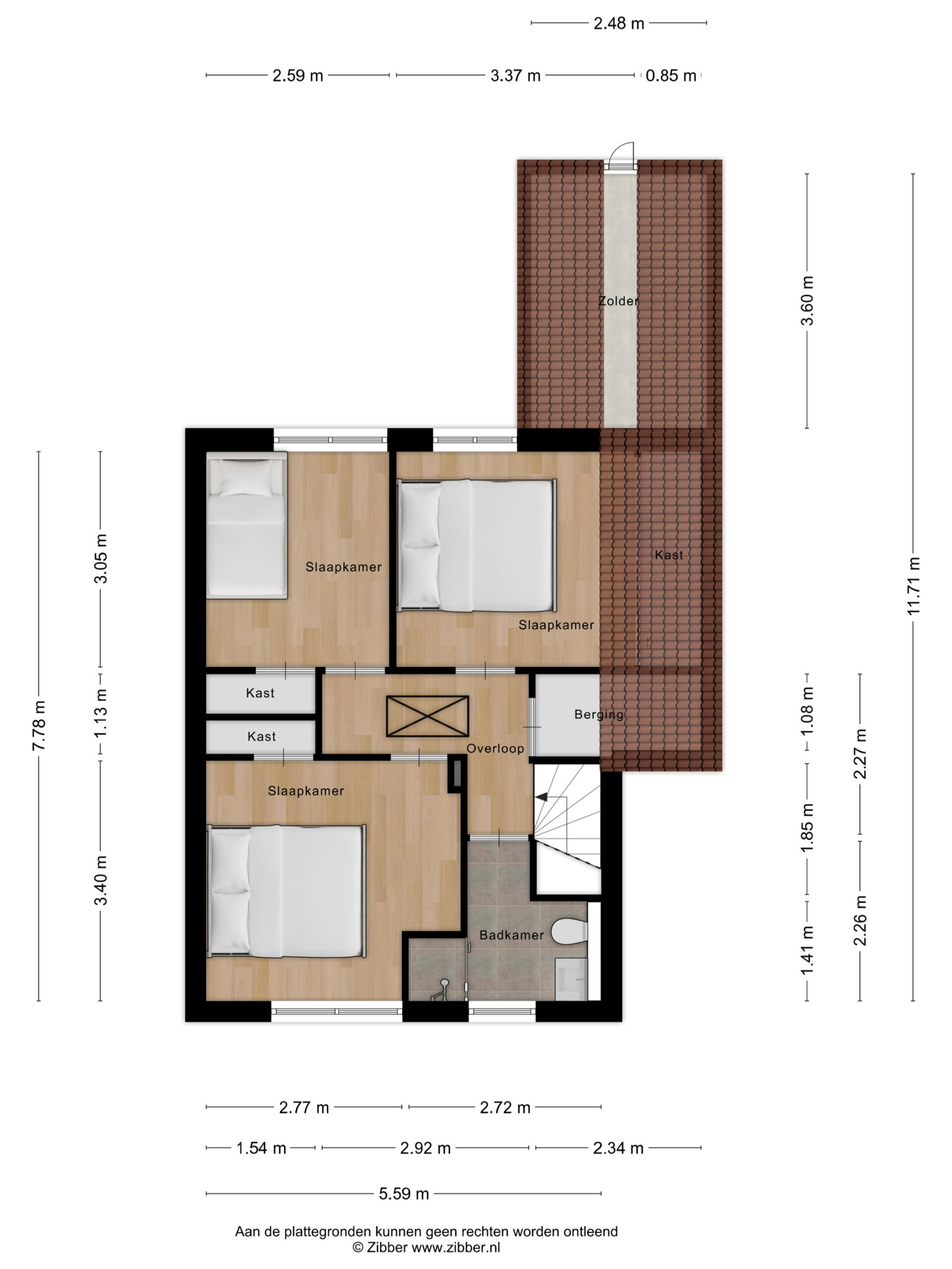 – via vaste trap te bereiken overloop met inloopkast